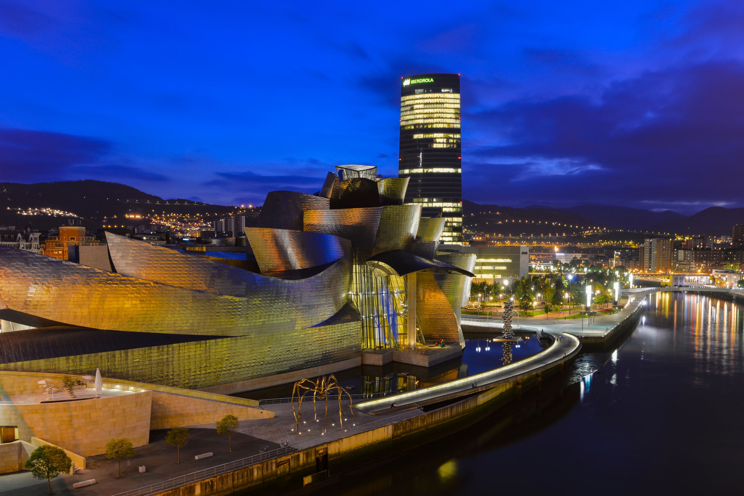 The Guggenheim Museum is an iconic symbol of modern architecture. Made of titanium, glass and limestone, this architectural marvel was designed by Frank Gehry and was built at a cost of $89 million.